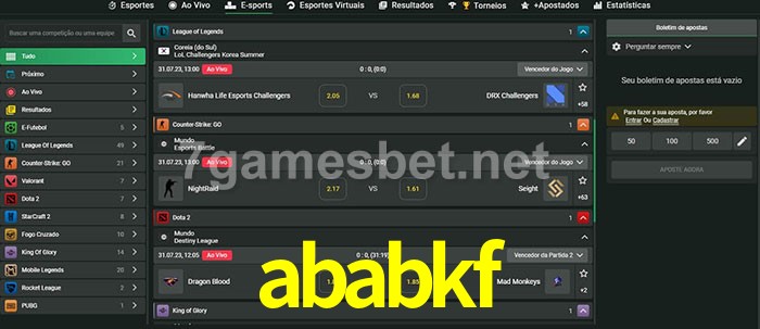 O ababkf oferece uma grande seleção de opções de apostas em e-sports com probabilidades competitivas